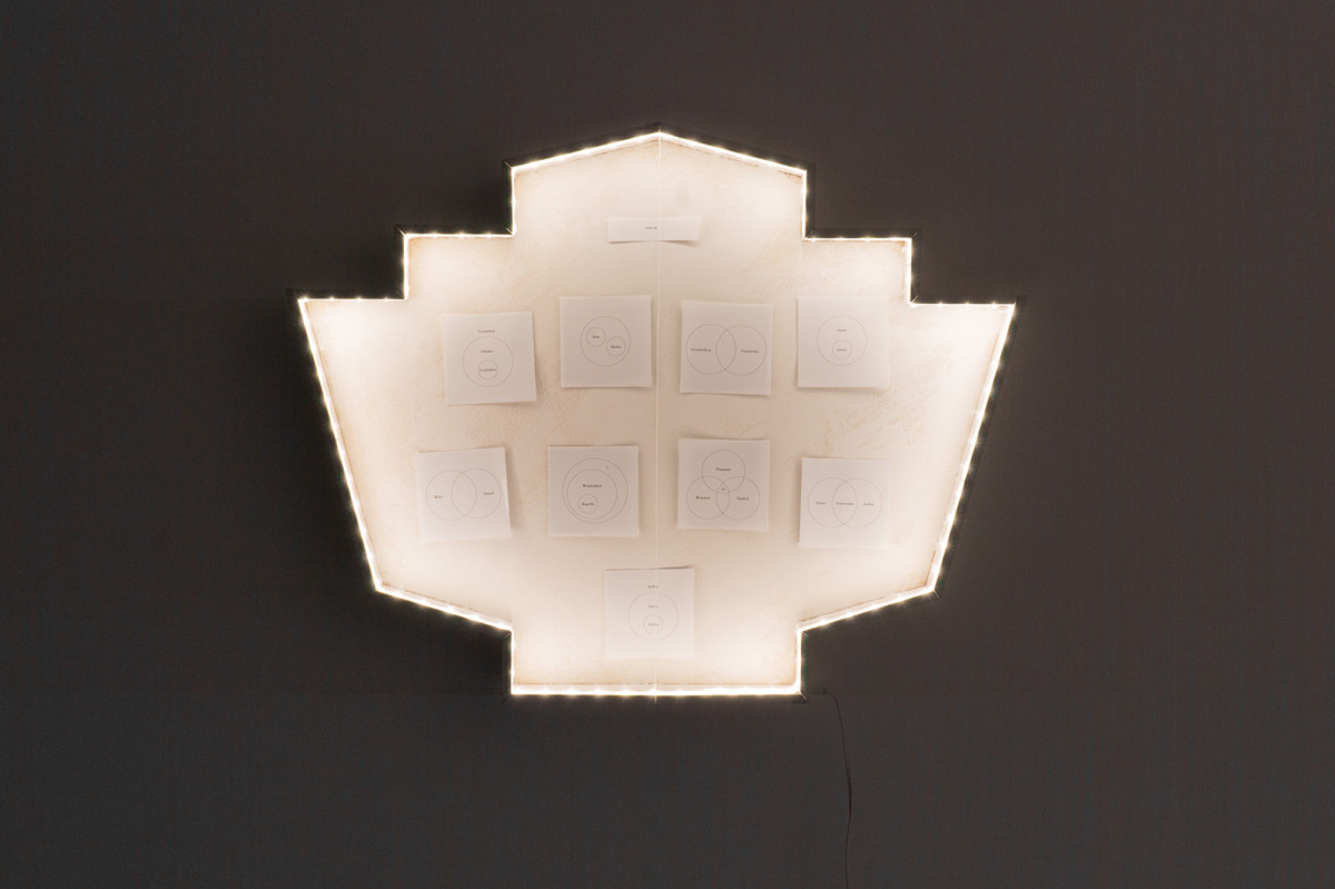 beech wood, LED tape, laserprinted noted, aluminium profiles
