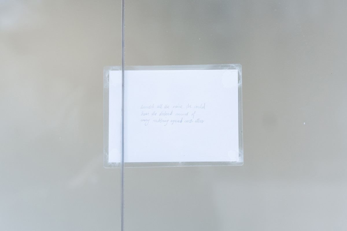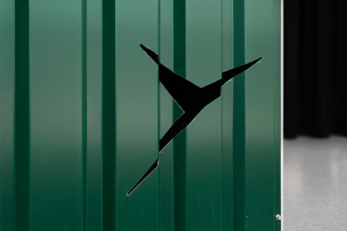 audio recording (10min, looped), trapezoidal steel, aluminumprofiles, edge protectors, 8-nuts, M8 cylinder screws