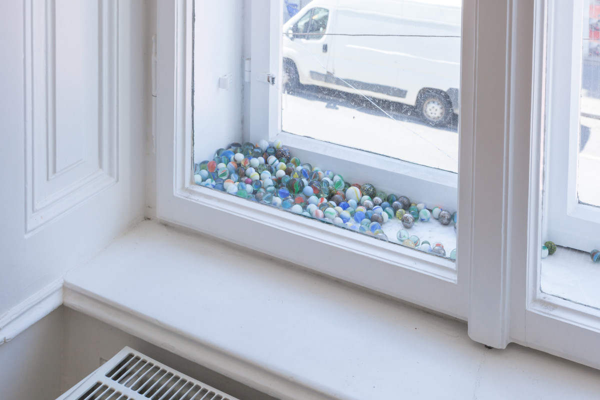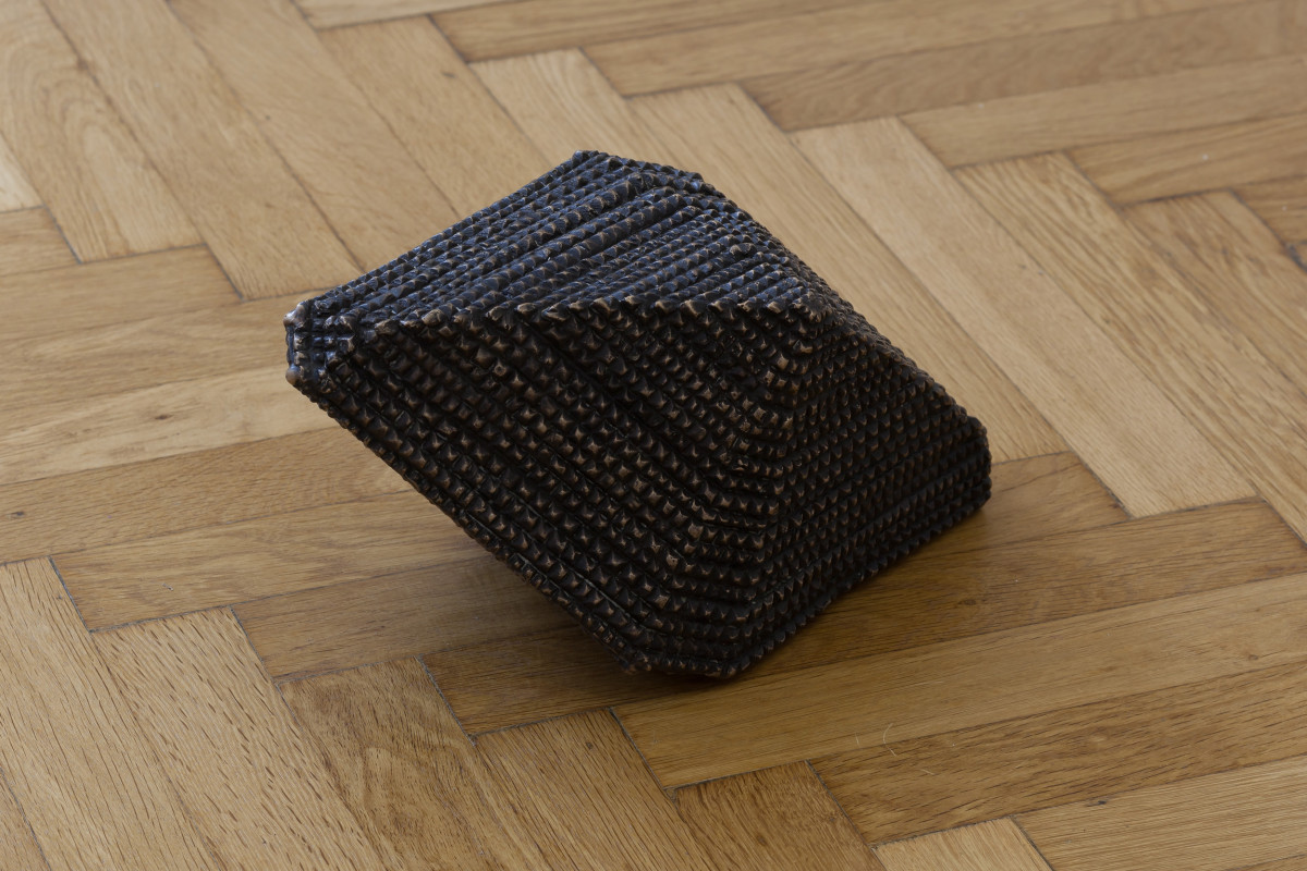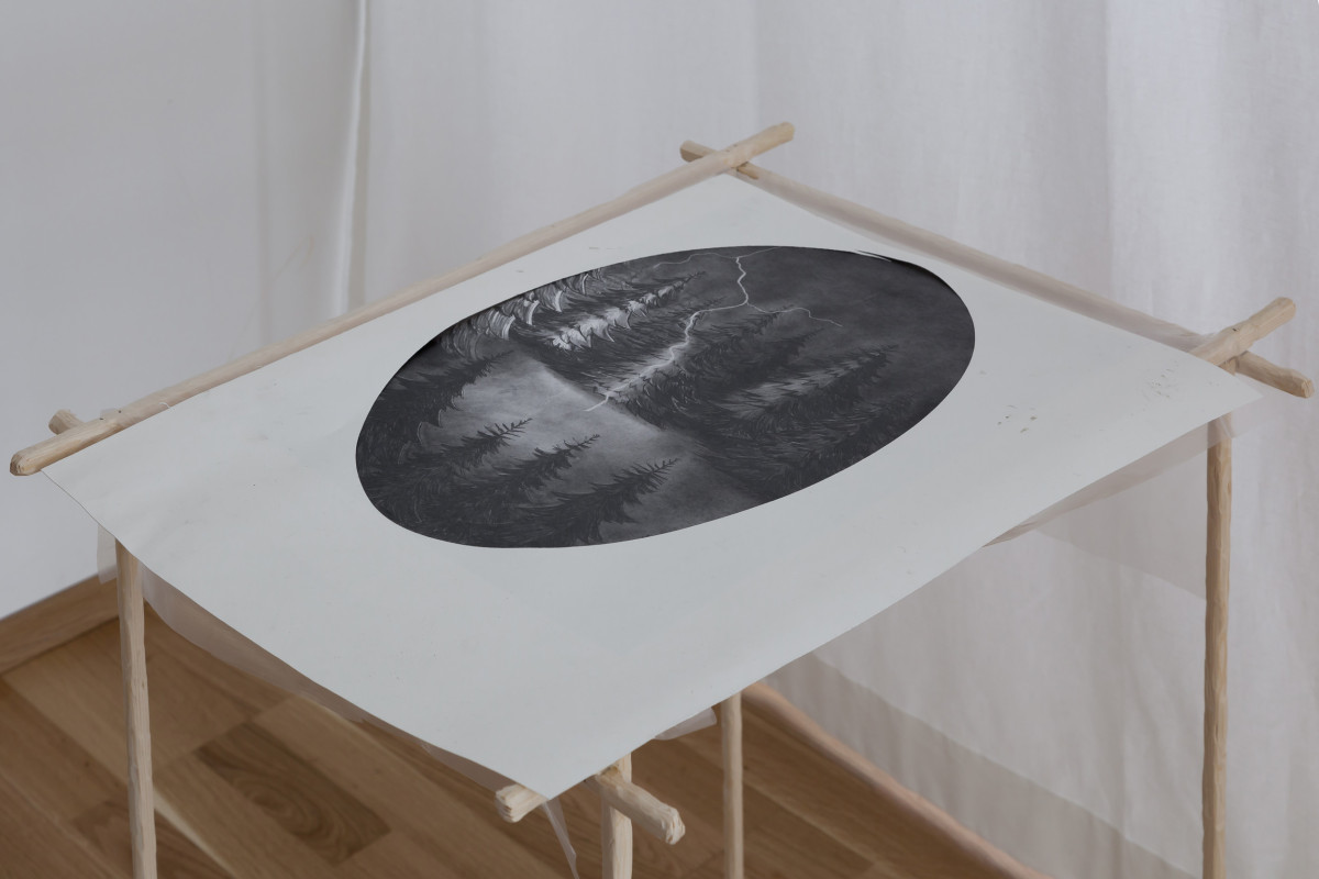 graphite on paper, construction wood,shrinkwrap, staples, brad nails, wax